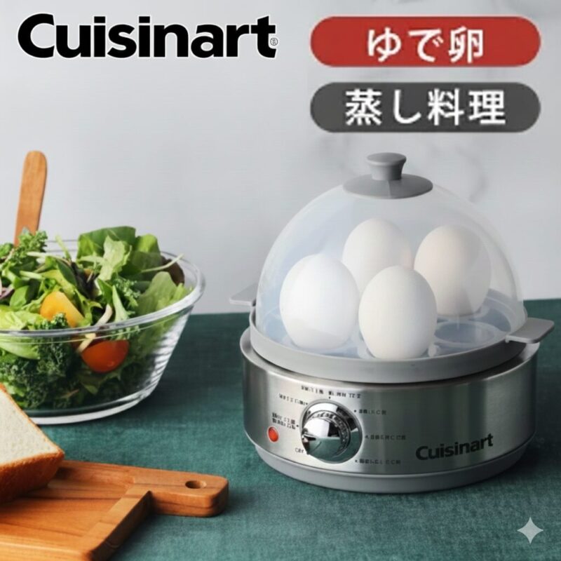 クイジナートの「クッキングスチーマー CEC20J」は、ボタンひとつで簡単にゆで卵や蒸し料理ができる便利な家電です。忙しい朝でも放っておくだけで絶妙な半熟卵が完成し、手軽に温野菜やしゅうまい、さつまいもまで調理できます。火を使わず安心で、健康的な食生活を送りたい方にもぴったりです。